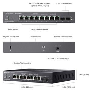 Omada inteligentný switch s 8 portami 2.5GBASE-T podporujúcimi PoE+ a 2 portami 10GE SFP+