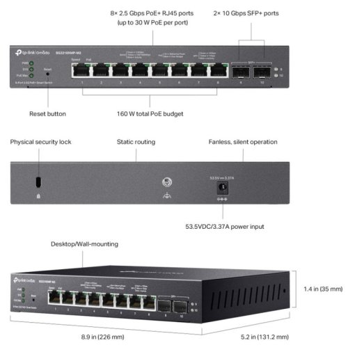 Interface • 8× 100/1000/2500 Mbps RJ45 PoE+ Ports