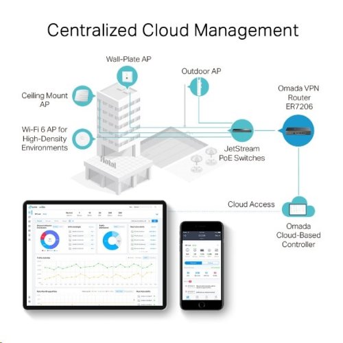 Robustne navrhnutý gigabitový multi-WAN VPN smerovač s integráciou do cloudového systému do Omada SDN s centralizovanou správou a inteligentným monitoringom. Ponúka vysoko zabezpečenú VPN , pokročilé zásady brány firewall, ochrana DoS, filtrovanie IP/MAC/URL a ďalšie.