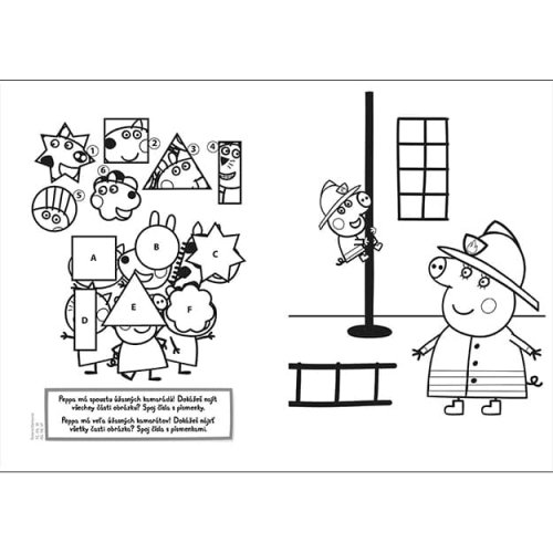 Omaľovánky obsahujú 16 čiernobielych strán s obrázkami na vyfarbenie a obľúbenými aktivitami.