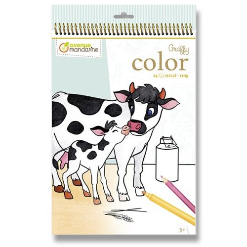Omaľovánky Avenue Mandarine Graffy Color vo veľkom formáte s motívmi zvieratiek z farmy. Predrezané listy pre prípadné ľahšie vytrhnutie z bloku. Omaľovánky obsahujú 24 listov, 12 motívov po 2 ks. Gramáž 160 g. Vhodné pre deti od 3 rokov,,Rozmery balenia: 21 x 34,2 cm