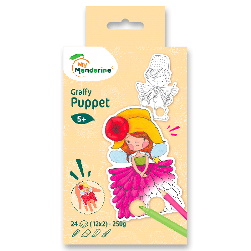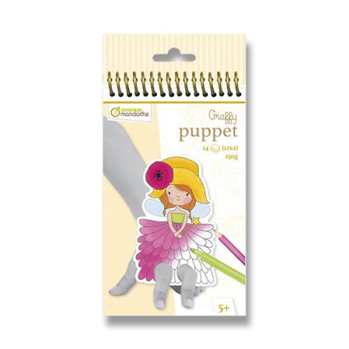 Maľovanky Avenue Mandarine Graffy Puppet s motívmi víl. Omaľovánky vopred pripravené a upravené na následné použitie ako prstové bábky, stačí ich vyfarbiť a hrať sa. Omaľovánky obsahujú 24 listov, 12 motívov po 2 ks, krúžková väzba. Možno použiť na techniky: pastelky, fixky, akvarel atď. Gramáž 250 g. Vhodné pre deti už od 5 rokov,, Rozmery 10 x 20 cm