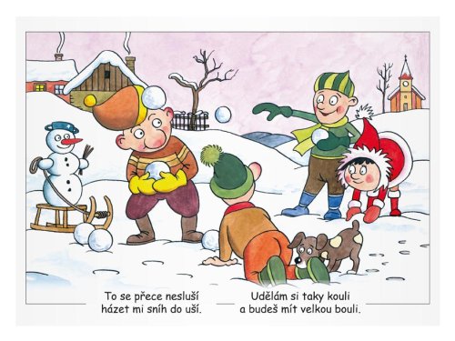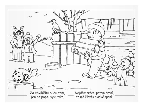 Detské omaľovánky MFP - Zima. Urobte si pohodové popoludnie s deťmi a vyfarbite si obrázok. Tieto omaľovánky sú jednoduché s veľkými obrázkami, teda vhodné aj pre tie najmenšie deti. Vyfarbovanie obrázkov pomôže rozvíjať množstvo schopností a zručností, najmä má veľký vplyv na jemnú motoriku ruky. Zakúpiť si u nášho môžete aj kvalitné farebné pastelky . Počet strán: 16 Ilustroval: J. Ponáhľal Format omaľovánok: A5 Počet obrázkov: 8 (spievanie kolied, stavanie snehuliaka, sánkovanie a i.) - Pri každom obrázku je Vianočný básnič ka. VAROVANIE: Nevhodné pre deti do 3 rokov. Nebezpečenstvo vdýchnutia a prehltnutia malých častíc.Uvedená cena je za 1 ks.