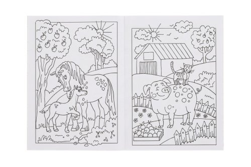 Roztomilé omaľovánky Zvieratá na farme prenesú deti na vidiek plný veselých zvieratiek. Vnútri nájdu obrázky kravičiek, prasiatok, sliepočiek, koníkov, oviec a ďalších obyvateľov farmy. Každá stránka ponúka jednoduchú, prehľadnú a hravú ilustráciu ideálnu na vyfarbenie.
