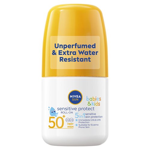 Detské mlieko na opaľovanie v guličke Sensitive OF 50+ Letná dovolenka s deťmi volá. Pribaľte im do batôžku ochranu pred slniečkom, teda čiapku a vodeodolný opaľovací krém: NIVEA detské mlieko v guličke Sensitive OF 50+. Letné hory alebo dovolenka pri mori je s deťmi vždy veľká výzva. Extra vodeodolné mlieko spoľahlivo ochráni aj toho najväčšieho plaváčka. A pretože rovnako ako on milujeme oceány: Opaľovacie mlieko neobsahuje mikroplasty ani škodlivé UV filtre a jeho obal je 100% recyklovateľný. Zloženie sme navyše vyvinuli spolu s pediatrami špeciálne pre citlivú detskú pokožku. Je úplne bez parfumácie a vhodné pre školáka aj pre bábätko už od 6 mesiacov. S guličkovým roll-onom natrite pohodlne každého malého neposedu: NIVEA Detské mlieko na opaľovanie v guličke Sensitive OF 50+. • Extra vodeodolné mlieko (nielen) na vodné hrátky. • Spoľahlivá, veľmi vysoká ochrana v podobe OF 50+. • Zloženie je špeciálne vyvinuté pre detskú pokožku už od 6 mesiacov. • Bez parfumu.• Rýchla a presná aplikácia vďaka guličkovému systému.
