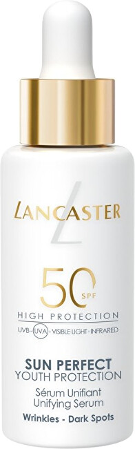 Anti-aging starostlivosti a slnečná ochrana v jednom kroku. Ľahké, vysoko účinné pleťové sérum, ktoré kombinuje intenzívnu hydratáciu, ochranu proti slnku a omladzujúce účinky. Sérum poskytuje širokospektrálnu ochranu proti UVA/UVB žiareniu a zároveň bojuje proti známkam starnutia, ako sú vrásky, pigmentové škvrny a strata jasu. Jeho ľahká textúra sa rýchlo vstrebáva, zanecháva pleť zjednotenú, hladkú a žiarivú.