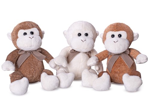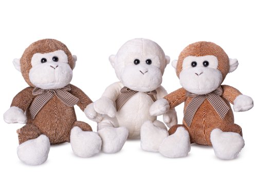 Opica plyšová 15 cm sediaca s mašľou - mix farieb (béžová, svetlo hnedá, tmavo hnedá)