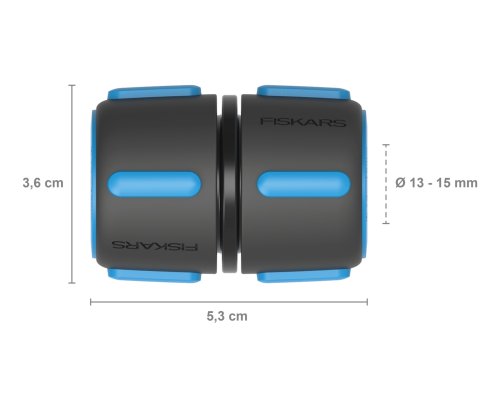 Rýchla oprava poškodených hadíc 1/2 - 5/8 coulu alebo ich predĺženie. Poškodenú časť vyrežte a oba konce hadice spojte. Dotykové body SoftGrip zaisťujú bezpečnú manipuláciu, aj keď sú mokré. Pohodlne sa drží, dokonca aj za chladného počasia, v porovnaní s kovovými dielmi na zavlažovanie. Farebné označenie na jednoduché pripojenie k hadicám Fiskars. Univerzálne pripojenie je kompatibilné s ostatnými značkami. Výška: 11,6 cm, dĺžka: 6,8 cm, šírka: 3,6 cm. Hmotnosť: 0,02 kg.