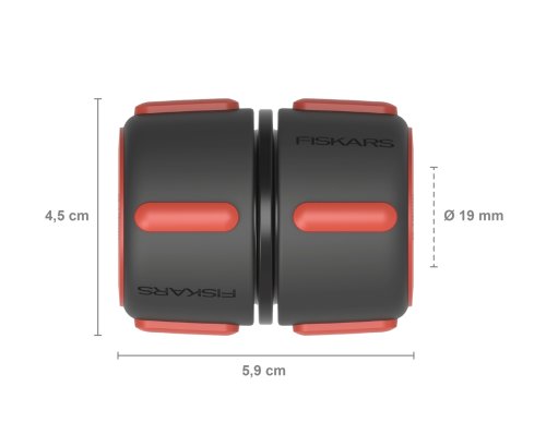 Rýchla oprava poškodených hadíc 3/4 coulu alebo ich predĺženie. Poškodenú časť vyrežte a oba konce hadice spojte. Dotykové body SoftGrip zaisťujú bezpečnú manipuláciu, aj keď sú mokré. Pohodlne sa drží, dokonca aj za chladného počasia, v porovnaní s kovovými dielmi na zavlažovanie. Farebné označenie na jednoduché pripojenie k hadicám Fiskars. Univerzálne pripojenie je kompatibilné s ostatnými značkami. Výška: 11,6 cm, dĺžka: 6,8 cm, šírka: 4,5 cm. Hmotnosť: 0,03 kg.