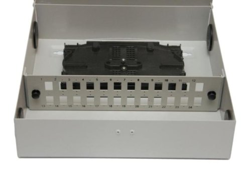 Rozvádzač kovový optický jednokrídlový so zámkom vybavený čelom pre 24x SC a 2x optická kazeta vrátane hrebienkov pre 4x6 zvarov.