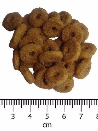 Analytické zložky : Hrubý proteín 32%, hrubý olej a tuky 16%, mastné kyseliny omega 6: 3%, mastné kyseliny omega 3: 0,6%, hrubá vláknina 3%, celková diétna vláknina 7%, hrubý popol 7%, vápnik 1,1%, fosfor 1%, vlhkosť 9%.
