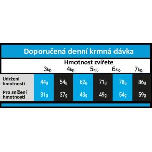 Ľahko stráviteľné sacharidy , pre zaistenie kvalitnej srsti, kože a podporu trávenia . Obsah omega 3 a 6 esenciálnych mastných kyselín pre správne fungovanie mozgu a optimálnu kondíciu kardiovaskulárneho systému . Obsah zinku napomáha udržiavať zdravú kožu a lesklú srsť . FOS + MOS s prebiotickými účinkami prispieva k zdraviu tráviaceho traktu. L-karnitín napomáha efektívnemu metabolizmu tukov, podporuje spaľovanie tukových zásob a udržanie svalovej hmoty, čo je ideálne pre mačky so sklonom k nadváhe alebo nižšou aktivitou.