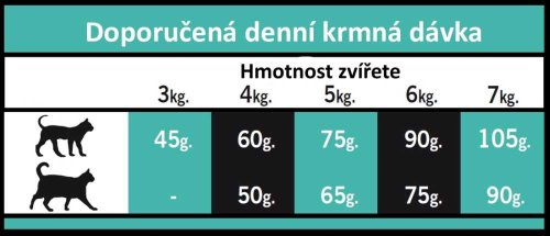 Ľahko stráviteľné sacharidy , pre zaistenie kvalitnej srsti, kože a podporu trávenia . Obsah omega 3 a 6 esenciálnych mastných kyselín pre správne fungovanie mozgu a optimálnu kondíciu kardiovaskulárneho systému . Obsah zinku napomáha udržiavať zdravú kožu a lesklú srsť . FOS + MOS s prebiotickými účinkami prispieva k zdraviu tráviaceho traktu.
