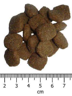 Analytické zložky: Hrubý proteín 32%, hrubý olej a tuky 22%, EPA+DHA 400 mg/kg, hrubá vláknina 2%, hrubý popol 8%, vápnik 1,25%, fosfor 1%.