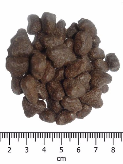 Analytické zložky: Hrubý proteín 29%, hrubý olej a tuky 22%, EPA+DHA 5300 mg/kg, hrubá vláknina 2,50%, hrubý popol 7,5%, vápnik 1,25%, fosfor 1,05%.