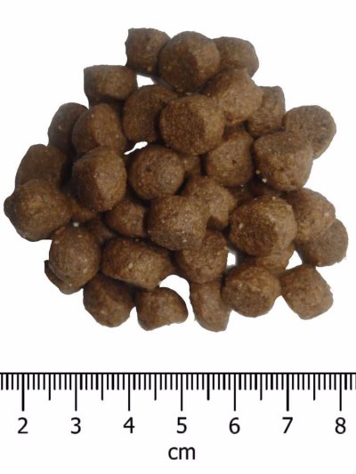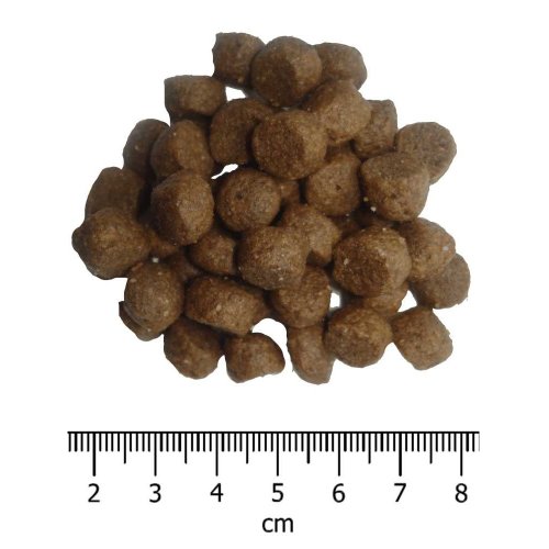 Analytické zložky: Hrubý proteín 30%, hrubý olej a tuky 19%, EPA+DHA 530 mg/kg, hrubá vláknina 1,85%, hrubý popol 8%, vápnik 1,35%, fosfor 1,15%.