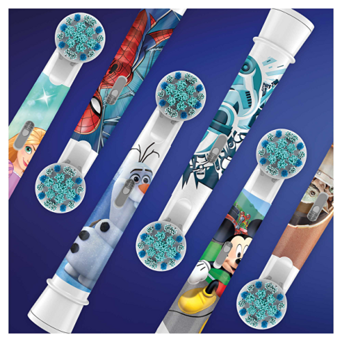 Náhradné kefkové hlavice k elektrickej zubnej kefke Oral-B Stages Power Kids s Disney postavičkami sú prispôsobené menším detským ústam a majú dizajn inšpirovaný špičkovými čistiacimi účinkami profesionálnych nástrojov zubných lekárov. Vlákna aj celková veľkosť kefky sú ideálne pre malé detské ruky a ústa a všetky kefkové hlavice zdobia Disney postavičky, ktoré si vaše deti zamilujú. Každé balenie obsahuje 4 náhradné kefkové hlavice Oral-B Stages Power Kids.