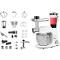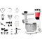 Vysoko kvalitný kuchynský robot je úžasným pomocníkom, ktorý si ťažkú prácu pri varení a pečení „odpracuje“ za vás. Vďaka nemu Vám v kuchyni skončia časy natiahnutých zápästia a driny pri varení, pečení aj mixovaní. Vyzerá ako šéfkuchár - v štýlovom bielom prevedení s akcentom na čiernu a nerezu pôsobí ako neprehliadnuteľný profesionál, ktorý si svoje miesto nájde v každej kuchyni bez ohľadu na zariaďovací štýl. Jeho silnou stránkou však nie je len vzhľad, ale aj schopnosti. Aj tie najťažšie úlohy na kuchynskej linke zvládne vďaka 1 400 W motoru, 6 rýchlostiam a režimu Pulse. Dokáže toho nespočetne: v 7 l nerezovej mise vymieša aj vyšľahá dokonalé cesto aj krémy do koláčov. Na kovovom mlynčeku na mäso ľahko rozomelie mäso na poctivý domáci hamburger. Ľahko si na ňom pripravíte aj domáce klobásky a jaternice. Na strúhadle s 3 rôznymi veľkosťami môžete krájať a strúhať zeleninu a ovocie do šalátov, ale aj na sladké a slané koláče. 1,5 l sklenená misa na mixovanie je ako stvorená prípravu polievok, omáčok aj zdravím nabitých smoothies. S jeho pomocou hravo vyčarujete aj fajn cukrovinky alebo poctivé domáce cestoviny. Ľahko sa rozoberá na menšie časti, ktoré ľahko umyjete pod tečúcou vodou. Aby pri plnení úloh na kuchynskej linke neuhol ani o milimeter, je vybavený gumovými prísavnými nožičkami pre stabilné uchytenie na pracovnej ploche.