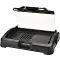 Stolný gril so skleneným vekom Dvojitá nepriľnavá grilovacia doska Rebrovaný a hladký povrch grilu umožňuje vyprážanie, grilovanie atď. Tepelne izolovaná rukoväť Odnímateľná miska na odkvapkávajúci tuk Nástrčkový termostat s plynulou reguláciou teploty Jednoduché čistenie