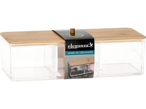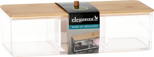 Transparentný organizér s bambusovým viečkom je vhodný na uskladnenie drobnostný či na make-up.