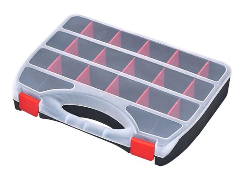 Plastový organizér DOMINO sa výborne hodí pre drobný materiál, je možné využiť aj meniteľnú veľkosť priehradiek.