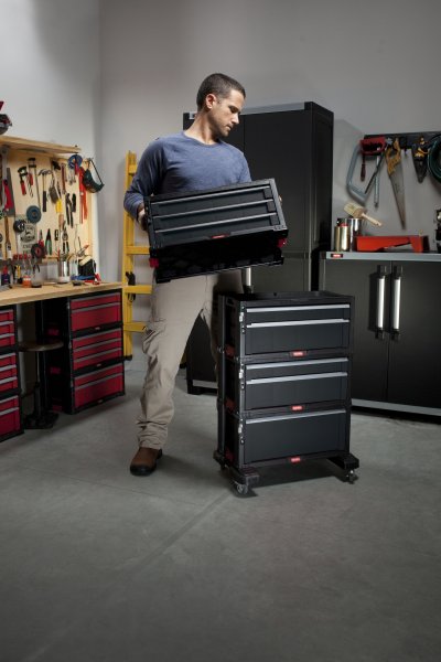 Na stranách boxu nájdete rukoväte na pohodlné prenášanie. Či už si ho chcete naložiť do auta, vziať si ho na záhradu alebo upratať do dielne, manipulácia s ním je jednoduchá. Organizér je vybavený jednou priestrannou zásuvkou , do ktorej uložíte náradie či iné pomôcky. Máte ich vždy po ruke a pripravené na použitie.