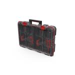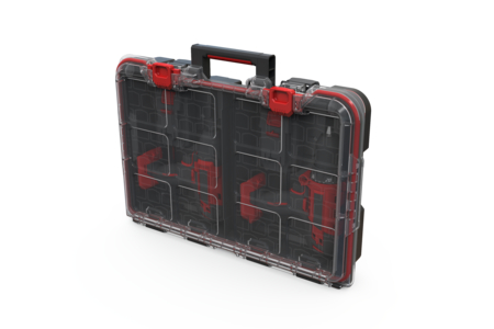 Skladá sa z 2 oddielov , do ktorých umiestnite drobné súčiastky, doplnky a iné remeselné potreby. Priehradky sa dajú vybrať, čím zväčšíte úložný priestor. Potom ľahko do boxu uložíte aj väčšie náradie. Kovové spony zaistia pevné uzavretie veka. Obsah organizéra sa vám teda nevysype a zostane v bezpečí. Rukoväť vám navyše zjednoduší prenášanie boxu.
