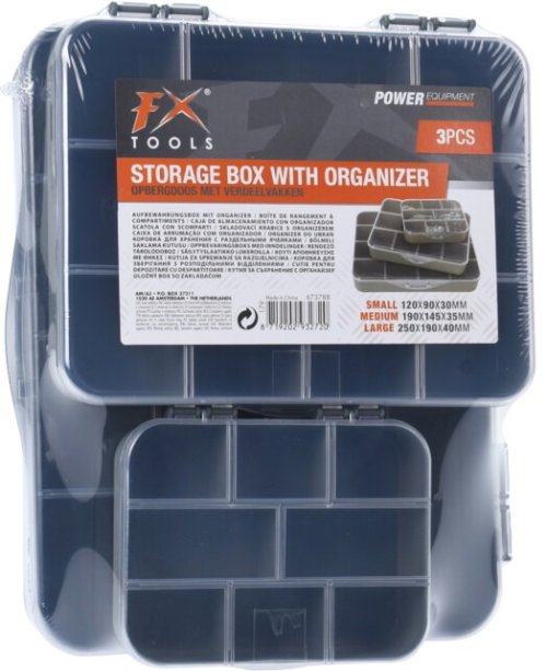 - sada 3 rôzne veľkých organizérov na skrutky a súčiastky- starostlivo uschované skrutky, matice, skrutky aj ďalšie drobné náčinie máte vždy po ruke- organizéry sú vhodné do každej dielne i garáže- v každom boxe …
