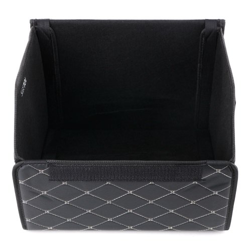 Pokiaľ organizér práve nepotrebujete, rozložíte ho a ľahko uskladníte. Ušetríte tým priestor v aute. Vďaka koženému designu so vzorovým šitím vyzerá organizér luxusne. Kvalitný povrch z umelej kože kedykoľvek ľahko umyjete. Navyše je pevný a odolný.