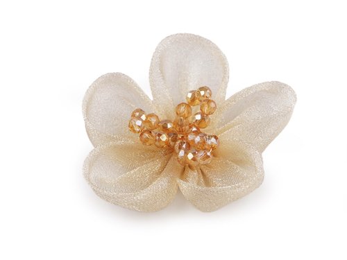 Organzový kvet s brúsenými korálkami na našitie a nalepenie Ø4,5 cm - (15) béžové svetlé (2 ks)