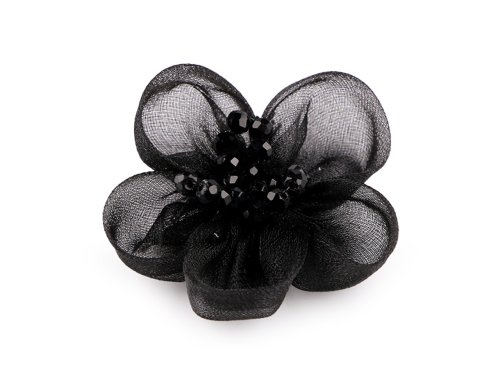 Organzový kvet s brúsenými korálkami na našitie a nalepenie Ø4,5 cm - (26) čierna (10 ks)