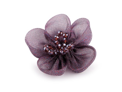 Organzový kvet s brúsenými korálkami na našitie a nalepenie Ø4,5 cm - (28) fialová tmavá (2 ks)