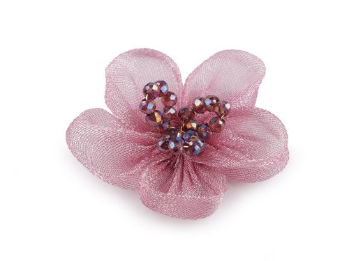 Romantický organzový kvet s jemným ligotom je v strede dozdobený prepracovanými pestíkmi z brúsených korálikov. Vďaka nim sa nádherne leskne. Kvet má široké možnosti využitia, pôsobí nadýchaným vzhľadom. V spodnej časti má textilné koliesko, pomocou ktorého ho pohodlne kamkoľvek upevníte. Dá sa našiť aj nalepiť. Použitie: Kvet môžete našiť ako ozdobu na spoločenské šaty, blúzky, tričká alebo svetre. Je vhodný aj na zdobenie klobúkov, čiapok a čeleniek do vlasov. Môžete ho tiež pomocou lepidla prilepiť na brošňový mostík a vytvoriť zaujímavý šperk.