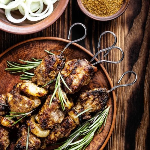 Súprava šiestich kusov kovových ihiel na prípravu špízov.