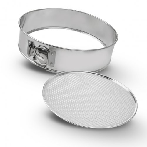 Tortová guľatá forma s odnímateľným dnom je opatrená prackou pre ľahké vybratie korpusov, tort.
