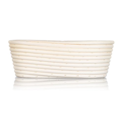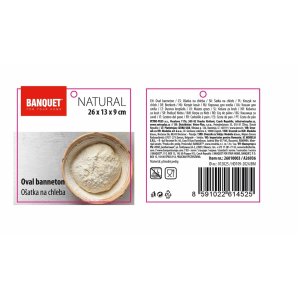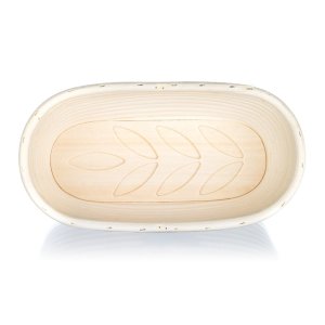 Oválne ošatky na prípravu domáceho chleba s motívom KLAS. Možno využiť na kysnutie cesta, uskladnenie chleba, servírovanie pečiva aj ako dekoráciu. Tvar a štruktúra odevu sa odtlačí do cesta a vytvorí tak klasický vzhľad bochníka. Vyrobená z prírodného pedigu. Ovál 26 x 13 a výška 9 cm (bochník 1 kg, potreba 500 g múky). Pri umývaní sa nemáčí, iba sa nechajú uschnúť alebo ich možno vykefovať. EAN 8591022614525
