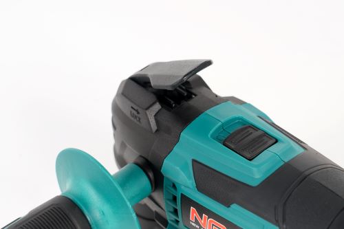 Rezný či brúsny nástroj rýchlo a bez problému vymeníte. Navyše bez použitia náradia. Rukoväť brúsky je ergonomicky tvarovaná a pokrytá protišmykovým materiálom , takže ju pevne uchopíte. Prídavnú bočnú rukoväť môžete namontovať na 2 rôzne miesta. Veľkou výhodou je aj pracovné LED svetlo .