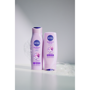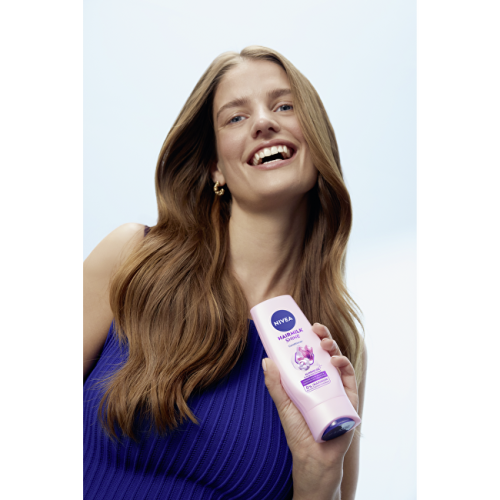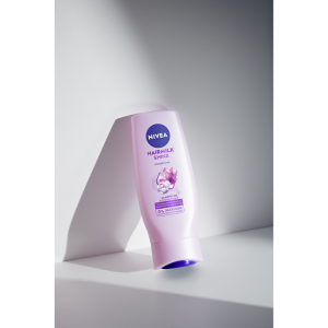 Jemný kondicionér s mliečnymi a hodvábnymi proteínmi sa stará o unavené vlasy bez lesku.