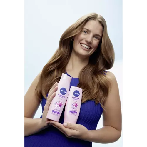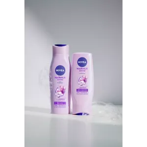 Jemný kondicionér s mliečnymi a hodvábnymi proteínmi sa stará o unavené vlasy bez lesku.
