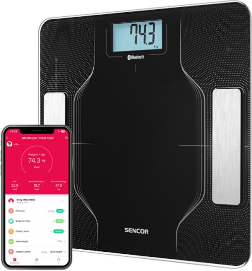 Moderná osobná váha Sencor SBS 8002BK vám poskytne prehľad o vašej fyzickej kondícii pomocou presnej analýzy telesného zloženia. Cez Bluetooth sa ľahko prepojí s aplikáciou Sencor HOME pre iOS aj Android, a zároveň podporuje pripojenie ku Google Fit a Apple Health. Umožňuje vytvoriť viacero užívateľských profilov, sleduje históriu merania a poskytuje detailný prehľad vrátane výpočtu BMI, percenta telesného tuku, vody, svalovej hmoty i kostnej hmoty. Váha tiež odporúča denný kalorický príjem na základe nameraných hodnôt. Je vybavená funkciou Auto-ON pre okamžité váženie pri vstupe na váhu a 6 mm tvrdeným bezpečnostným sklom pre maximálnu odolnosť. Ponúka voľbu jednotiek (kg/lb), automatické vypnutie pri nečinnosti a napájanie dvoma AAA batériami, ktoré sú súčasťou balenia. Skvelý pomocník na každodennú kontrolu zdravia celej rodiny.