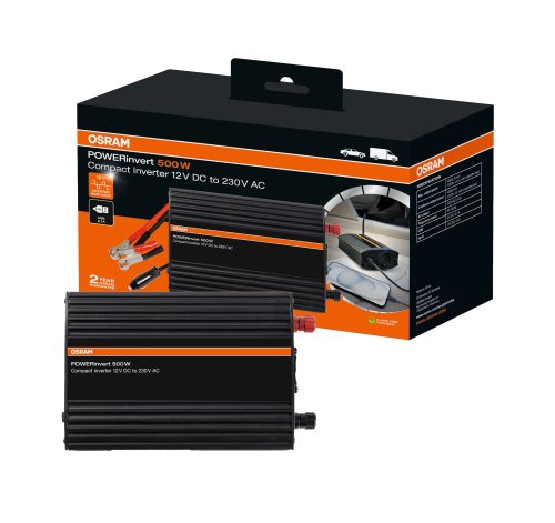 OSRAM POWERinvert s modifikovanou sínusovkou 12V DC 500 W je kompaktné riešenie pre premenu 12V jednosmerného prúdu na 230V striedavý prúd, ktoré dodáva sieťové napájanie priamo z automobilu. Tento invertor je ideálny na služobné cesty, výlety a dovolenky a podporuje zariadenia s výkonom až 500 W, ako sú chladničky, vŕtačky a počítače. Je vybavený vysoko výkonnou zásuvkou USB 2,1 A, ktorá je ideálna na nabíjanie chytrých telefónov a tabletov. Ľahko sa používa, stačí ho pripojiť k batérii pomocou priložených svoriek. Jeho kompaktná a ľahká konštrukcia zaisťuje pohodlné skladovanie a prenášanie.