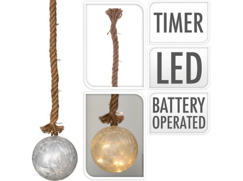 priemer gule: 15 cm dĺžka lana: 95 cm materiál: sklenená guľa, prírodné lano vrátane časovača