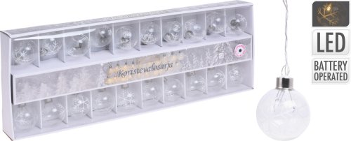 Dekoratívna vianočná reťaz zložená z čírych gulí s motívom vločky vykúzli krásnu a útulnú atmosféru nielen u Vás doma.