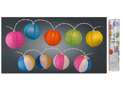 LED osvetlenie/dekorácia, ktoré vytvoria správnu atmosféru na oslave, párty, alebo večierku. 10LED LAMPIONY s priemerom 10 cm, reťaz 180 cm, rozostupy 20 cm, mix farieb. Vypínač. Kábel do zásuvky.