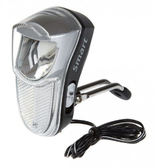 Inteligentné kombinované predné svetlo. Vhodné pre elektrobicykle, city bicykla s predným dynamonábojom. Možno pripojiť aj na bežné prídavné dynamo. 2 žilový káblik 50cm súčasťou svetla. Viditeľnosť až 600 metrov. Integrovaný vypínač a prepäťová ochrana.