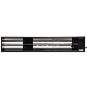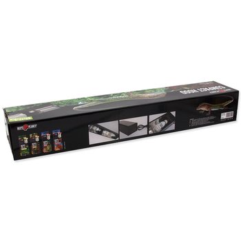 Kvalitne spracované osvetlenie pre terárijné žiarovky. Konštrukcia umožňuje horizontálne použitie žiaroviek, čo je ideálny variant pre UVB žiarovky , ktoré touto inštaláciou ponúkajú vyšší výkon UVB žiarenia. Pre výhrevné žiarovky je tento systém nevhodný, pretože v drvivej väčšine ide o žiarovky s reflektorovým systémom a žiarovka by teda ohrievala iba vnútornú časť svetla a smerom dole by nemala takmer žiadnu účinnosť.