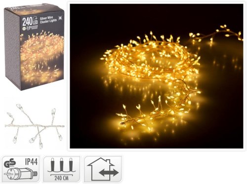 dĺžka: 2,4 m prívodný kábel: 5 m osvetlenie: 240 LED materiál: strieborný drôt vnútorné / vonkajšie použitie