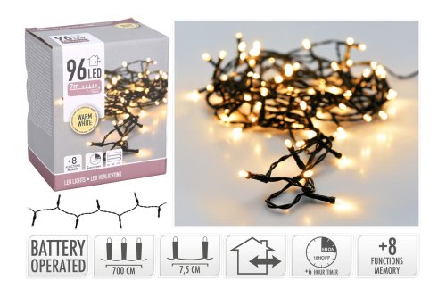 dĺžka: 7 m 96LED, teplá biela časovač 8 funkcií farba: zelená IP44 vonkajšie/vnútorné