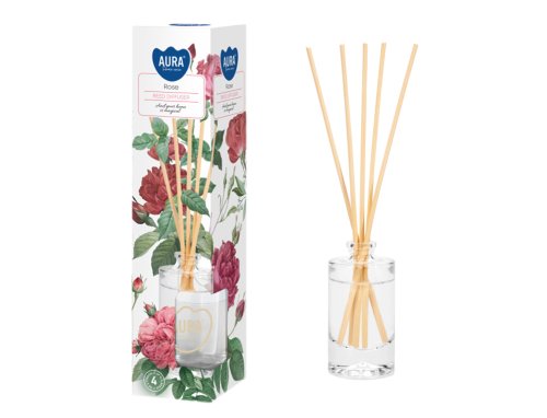 Odparovací osviežovač vzduchu s tyčinkami na prevoňanie bytu, kancelárií atď. Čím viac sa vloží tyčiniek, tým bude vôňa intenzívnejšia. Vôňa: ruža.