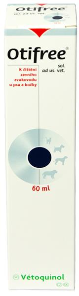 Roztok na čistenie vonkajšieho zvukovodu u psov a mačiek. Otifree ® roztok má schopnosť intenzívne rozpúšťať ušný maz a nečistoty, významne sa tak tiež znižuje počet baktérií a kvasiniek prítomných vo vonkajšom zvukovode. Otifree ® roztok má schopnosť intenzívne rozpúšťať ušný maz a nečistoty, významne sa tak tiež znižuje počet baktérií a kvasiniek prítomných vo vonkajšom zvukovode. Vďaka vyváženému zloženiu spolu s nechtíkom lekárskym zabezpečuje prípravok normálnu štruktúru a odolnosť kože. Súčasne nevysušuje a udržuje kožu vlhkú a vláčnu. Zloženie: Propylénglykol 40,0 g, emulgátor 5,0 g, extrakt z nechtíka lekárskeho (Calendula officinalis) 3,0 g, bazalkový olej 0,028 g, čistená voda ad 100,0 ml. Cieľové druhy: Psy a mačky. Dávkovanie: Do vonkajšieho zvukovodu 1x týždenne, častejšie aplikácie po konzultácii s veterinárnym lekárom. Spôsob použitia: Naplniť vonkajší zvukovod roztokom, ohybnú časť zvukovodu uchopte medzi palec a prstami a miernym tlakom smerom hore a dole masírujte. Intenzita masáže sa riadi citlivosťou ucha. Tekutinu vysajte vatou, úplné vysušenie vonkajšieho zvukovodu nie je nutné, pretože uvoľnené nečistoty z hlbších častí vonkajšieho zvukovodu odstráni už zviera samo. Pri neodbornom čistení vonkajšieho zvukovodu vatovým tampónikom hrozí nebezpečenstvo vzniku zápalu zvukovodu jeho poranením alebo zatlačením ušného mazu do hĺbky. Zvláštne upozornenie: Liek sa nesmie používať po uplynutí doby použiteľnosti vyznačenej na obale. Uchovávajte mimo dohľadu a dosahu detí. Len pre zvieratá. Balenie: 60 ml.
